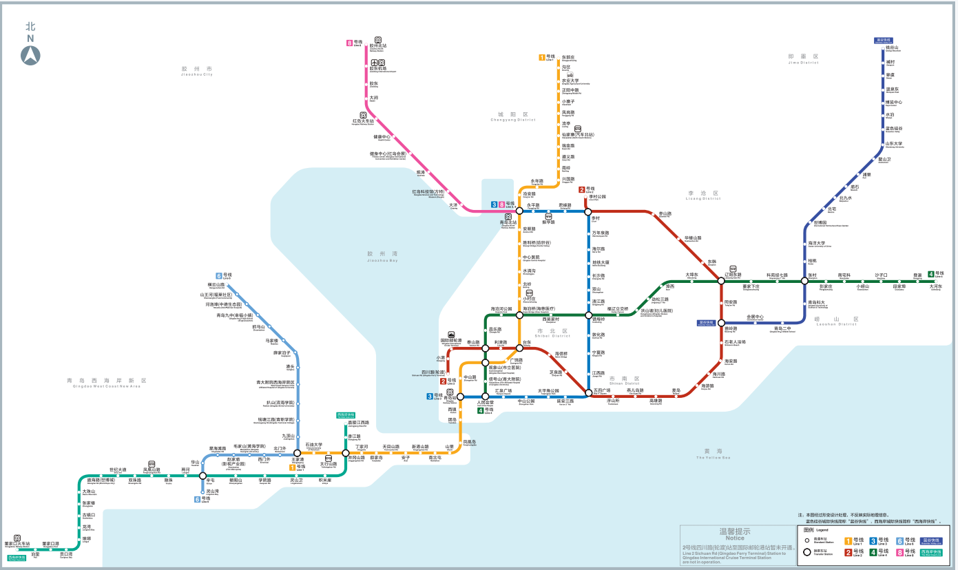青島地鐵已開通運(yùn)營線路8條,共設(shè)運(yùn)營車站169座(換乘站不重復(fù)計入),其中青島地鐵1號線(含7號線一期),共設(shè)運(yùn)營車站41座;青島地鐵2號線一期,共設(shè)運(yùn)營車站22座;青島地鐵3號線,共設(shè)運(yùn)營車站22座;青島地鐵4號線,共設(shè)運(yùn)營車站25座;青島地鐵6號線一期,共設(shè)運(yùn)營車站21座;青島地鐵8號線北段,共設(shè)運(yùn)營車站11座;藍(lán)谷快線,共設(shè)運(yùn)營車站21座;西海岸快線,共設(shè)運(yùn)營車站23座(青島地鐵線網(wǎng)圖見下圖)。