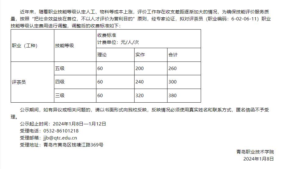 青島職業(yè)技術(shù)學(xué)院關(guān)于職業(yè)技能等級認(rèn)定費(fèi)用調(diào)整的公示
