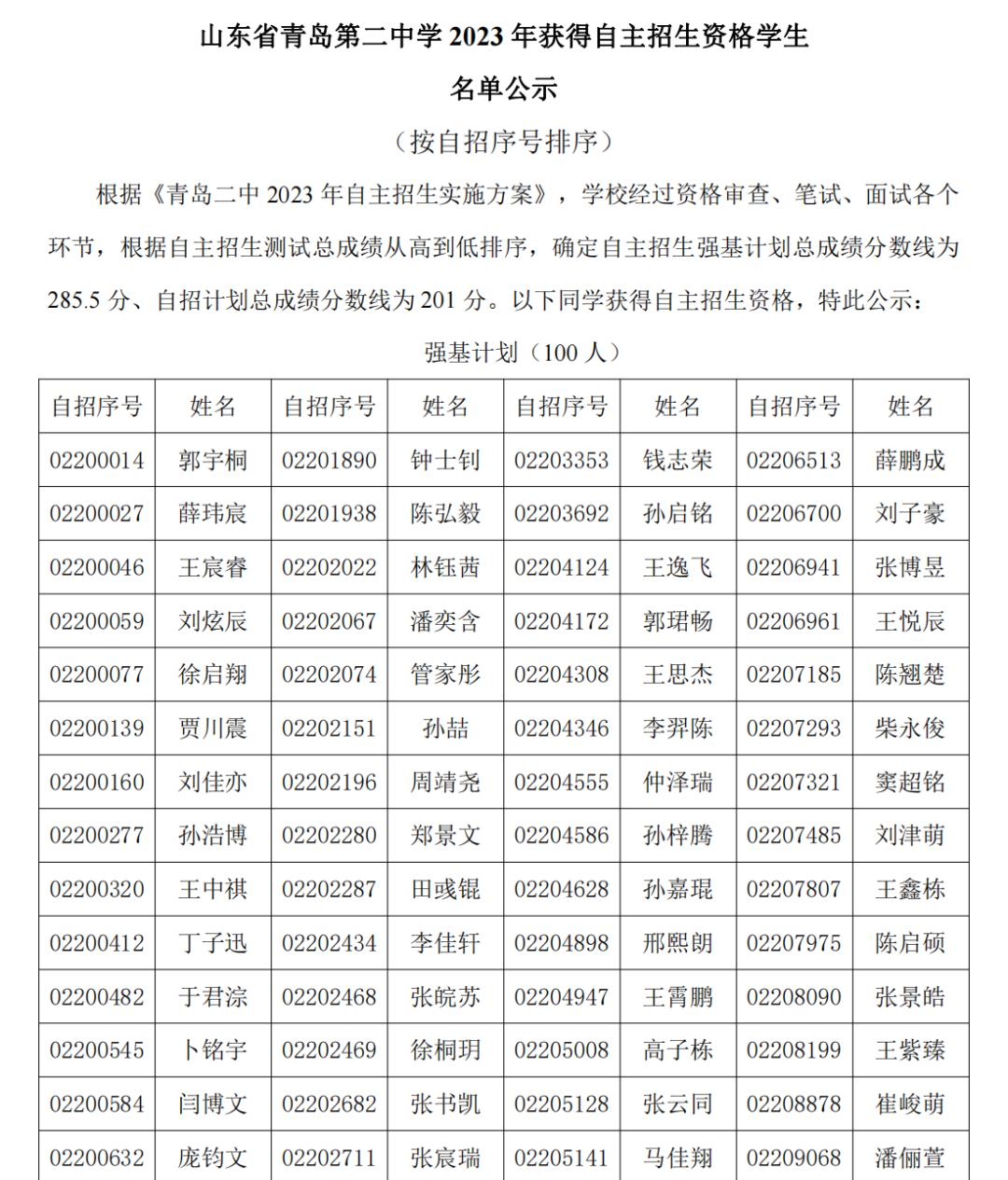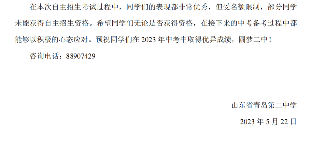 青島二中2023年獲得自主招生資格學(xué)生名單公示