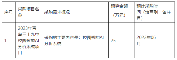 為便于供應(yīng)商及時了解政府采購信息,根據(jù)《財政部關(guān)于開展政府采購意向公開工作的通知》(財庫〔2020〕10號)等有關(guān)規(guī)定,現(xiàn)將 山東省青島第三十九中學(xué) 2023年06(至)07月采購意向公開如下: