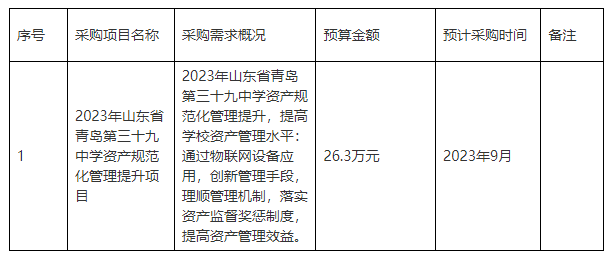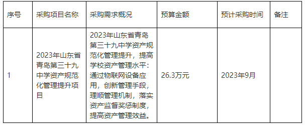 2023年山東省青島第三十九中學資產(chǎn)規(guī)范化管理提升項目采購需求公示