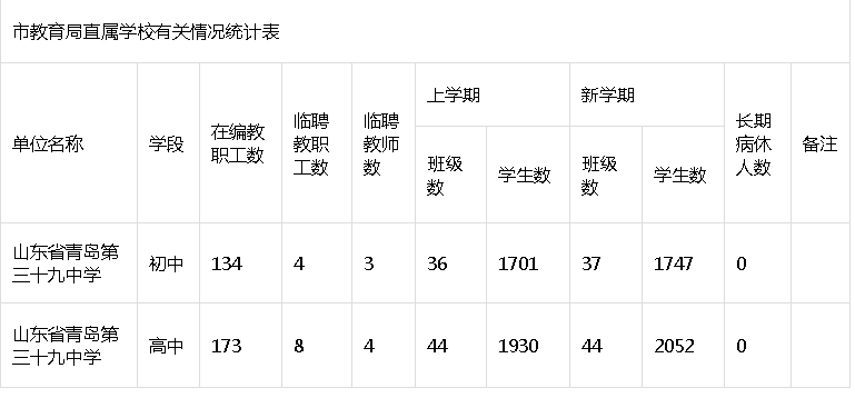 2023年度山東省青島第三十九中學(xué)在校生數(shù)據(jù)、教師數(shù)據(jù)、辦學(xué)條件數(shù)據(jù)統(tǒng)計(jì)公開(kāi)