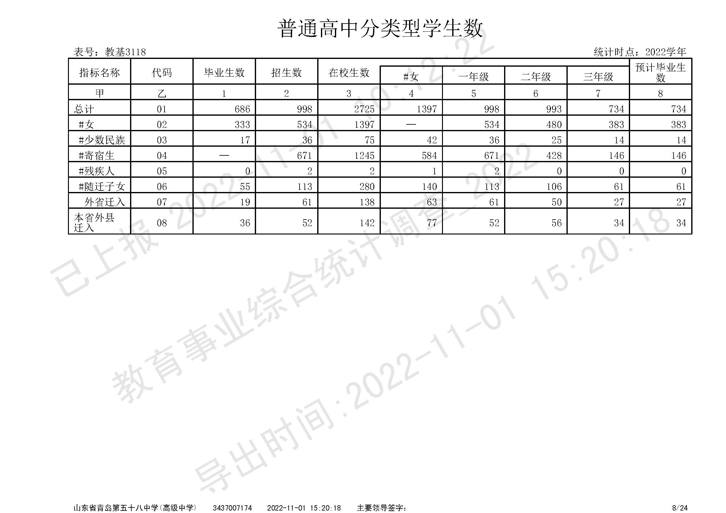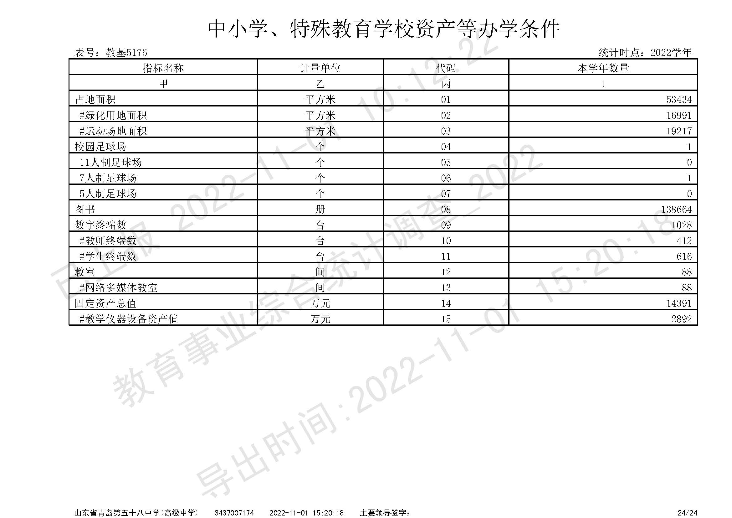 青島五十八中2022年在校師生、辦學(xué)條件數(shù)據(jù)