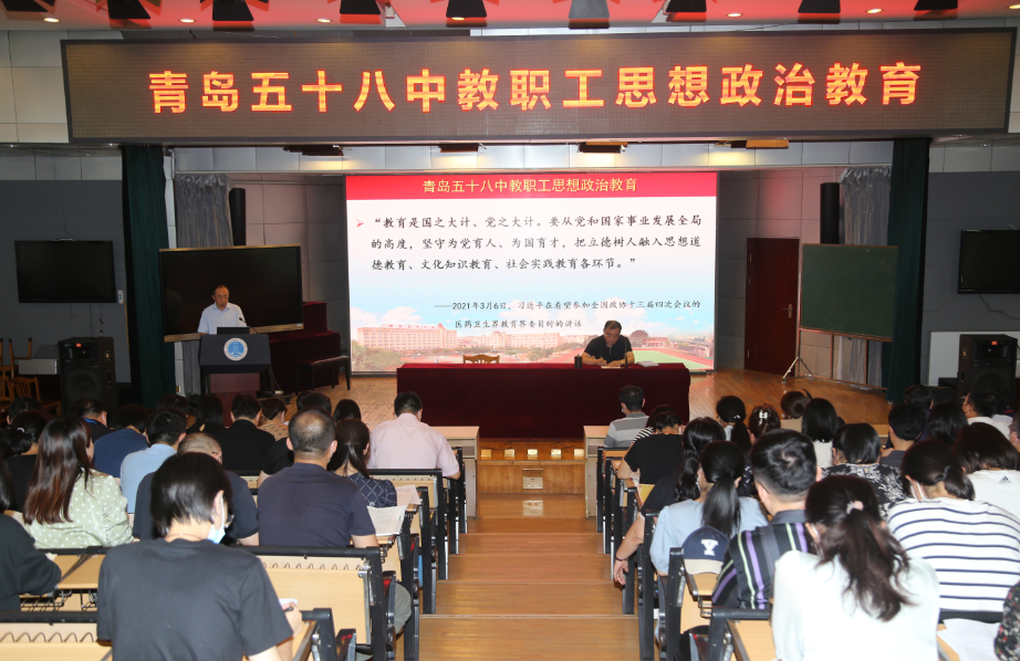 2022年9月29日下午,青島五十八中在學(xué)校報(bào)告廳召開(kāi)大會(huì),學(xué)習(xí)《習(xí)近平總書(shū)記給北京師范大學(xué)“優(yōu)師計(jì)劃”師范生重要回信精神的通知》,《通知》要求結(jié)合習(xí)近平總書(shū)記關(guān)于教育的重要講話,抓好習(xí)近平總書(shū)記重要回信精神的貫徹落實(shí),進(jìn)一步加強(qiáng)教師思想政治教育和師德師風(fēng)建設(shè),落實(shí)意識(shí)形態(tài)責(zé)任制。