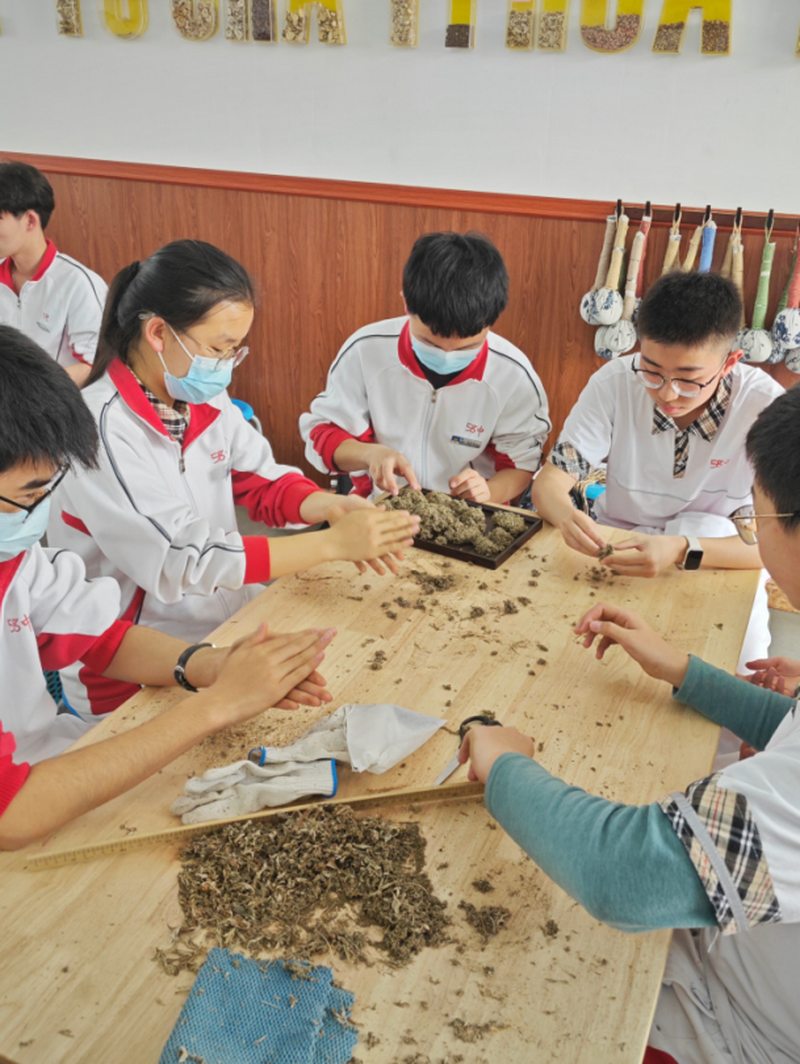 工坊里也熱火朝天,同學(xué)們?nèi)橥度雱?chuàng)造,將鮮嫩的艾草與質(zhì)樸的棉布巧妙組合,打造成形態(tài)各異的艾草錘。有的像圓潤飽滿的繡球,有的似憨態(tài)可掬的萌兔。傳統(tǒng)中醫(yī)藥養(yǎng)生文化,借助一雙雙巧手,煥發(fā)出蓬勃的生機 ,讓這項古老技藝在春日實踐中重獲新生。