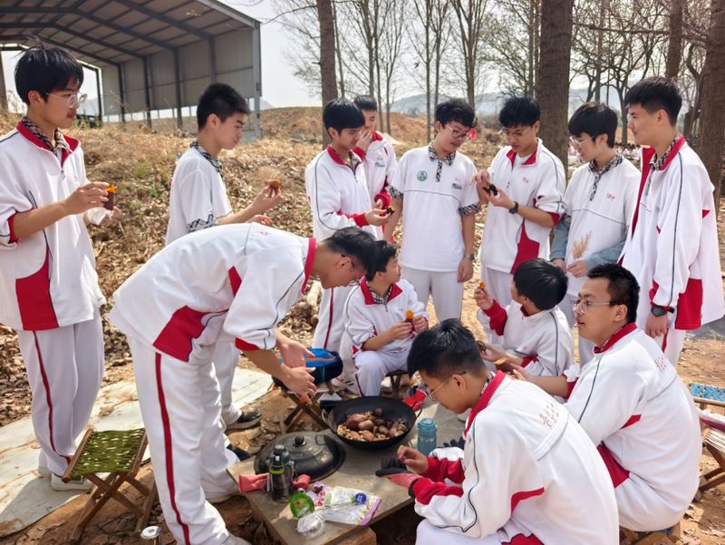 野炊場地更是一片歡聲笑語,同學(xué)們迅速分工,有的負(fù)責(zé)生火,有的忙著洗菜,有的專心掌勺。在裊裊炊煙中,大家品嘗著自己親手燒制的美食,真切地體會到了勞動帶來的快樂與滿足。