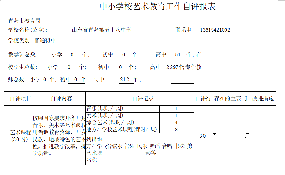 2022年度藝術(shù)教育自評(píng)結(jié)果