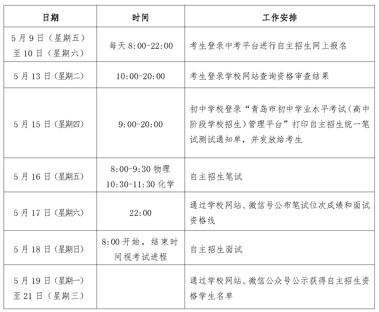 3.初中學(xué)校于5月15日(星期四)9:00-20:00期間登錄“青島市初中學(xué)業(yè)水平考試(高中階段學(xué)校招生)管理平臺(tái)”打印自主招生統(tǒng)一筆試測(cè)試通知單,并發(fā)放給考生。