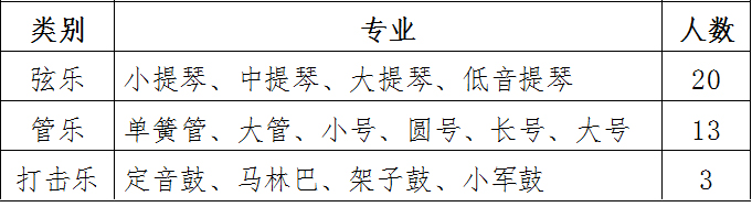演奏一首樂(lè)曲(定音鼓樂(lè)器學(xué)??商峁?,其他樂(lè)器自備、不帶伴奏)。要求演奏樂(lè)曲完整,音準(zhǔn)節(jié)奏正確,樂(lè)感好,具有較強(qiáng)的音樂(lè)表現(xiàn)力。