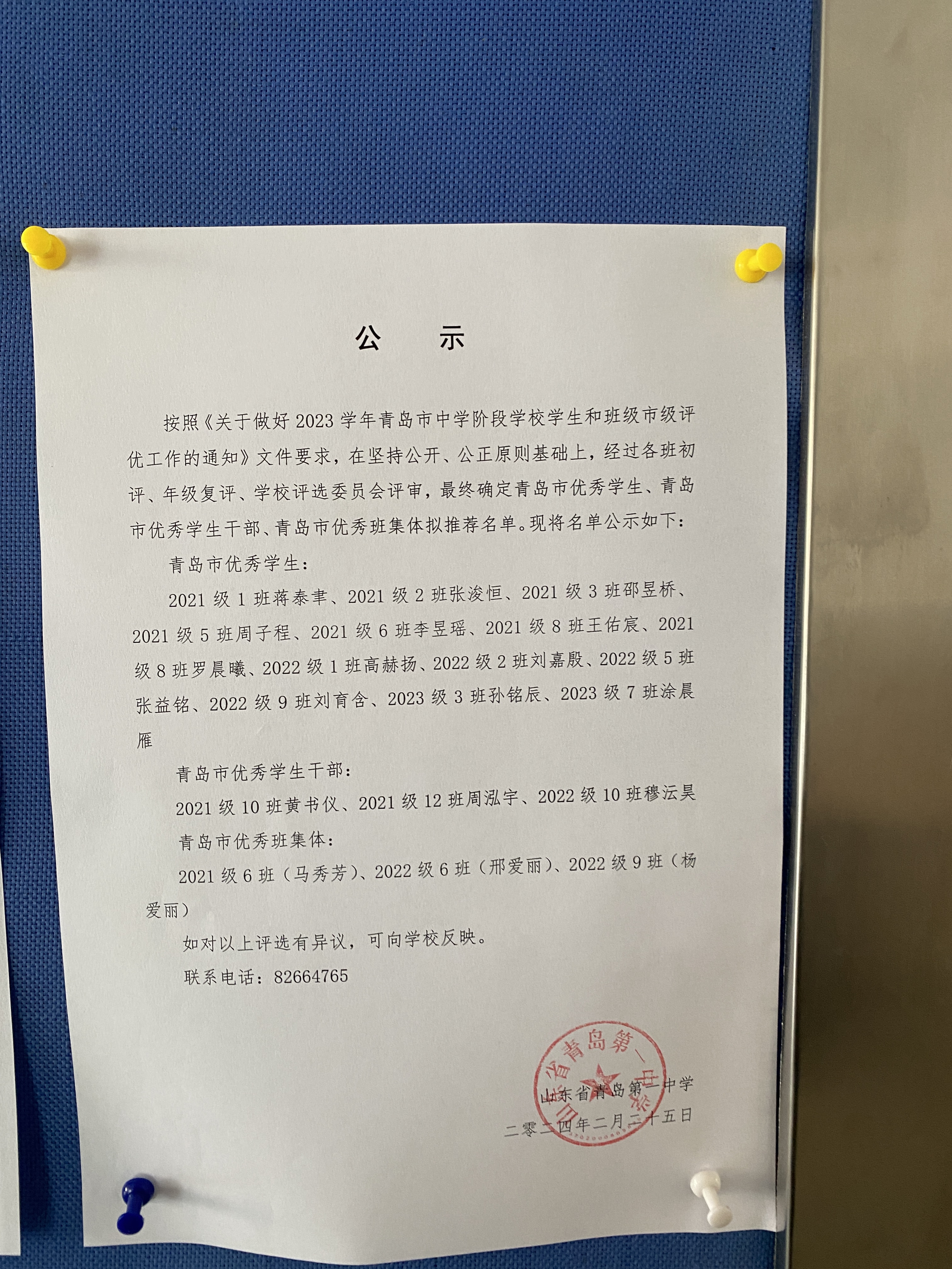 青島一中2023學(xué)年市優(yōu)學(xué)生名單公示