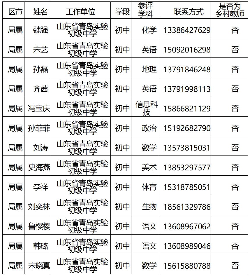 根據(jù)《青島市教育局辦公室關于評選青島市教學能手的通知》 (青教辦字〔2023〕22號)文件要求,經(jīng)過各教研組推薦,先將擬參加2023年教學能手申報的名單公示如下: