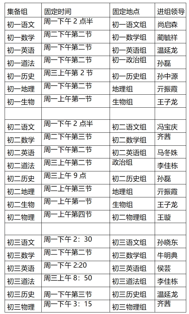 本學(xué)期集備時(shí)間安排如下: