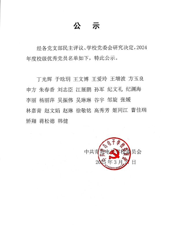 青島電子學(xué)校 2024年度校級(jí)優(yōu)秀共產(chǎn)黨員公示