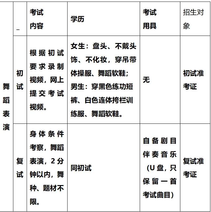 2.身心健康,無不適宜從事舞蹈訓練、音樂表演練和集體生活的疾病與缺陷。