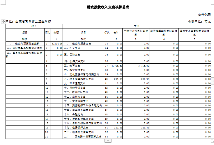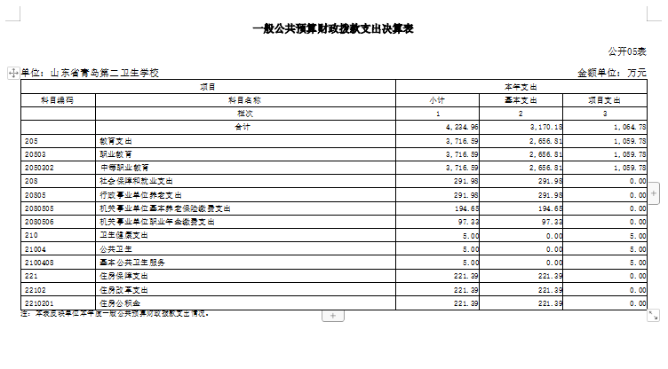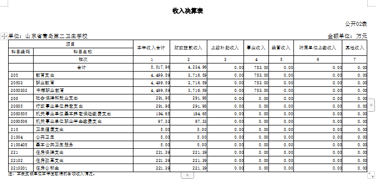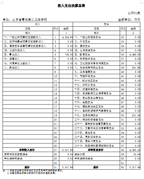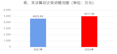2022年度收、支總計5,017.96萬元。與2021年度相比,收、 支總計各增加395.30萬元,增長8.55%。主要是一般公共預算財政 撥款收入增加,教育支出、社會保障和就業(yè)支出、住房保障支出增加。