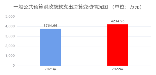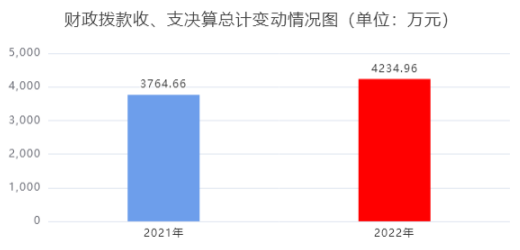 2022年度財政撥款收、支總計4,234.96萬元。與2021年度相 比,財政撥款收、支總計各增加470.30萬元,增長12.49%。主要 是一般公共預算財政撥款收入增加,教育支出、社會保障和就業(yè)支出、住房保障支出增加。