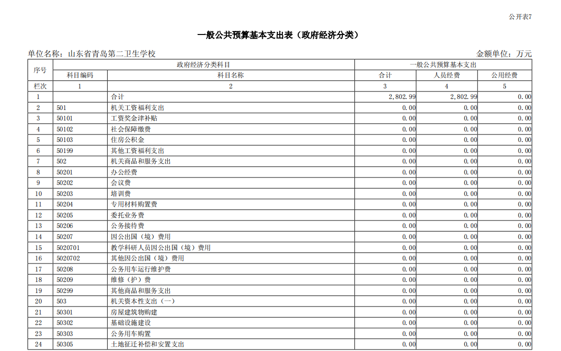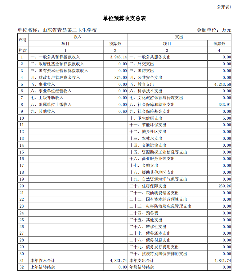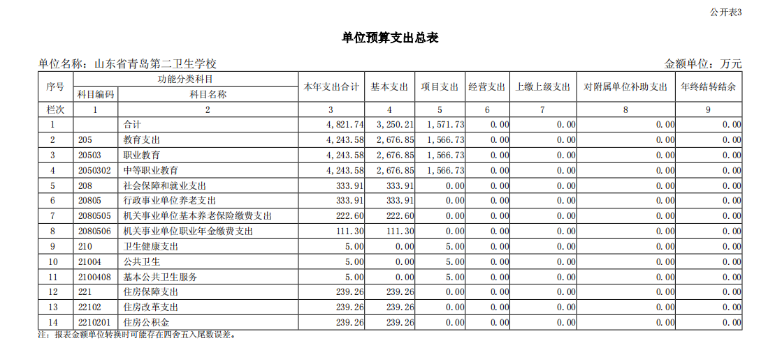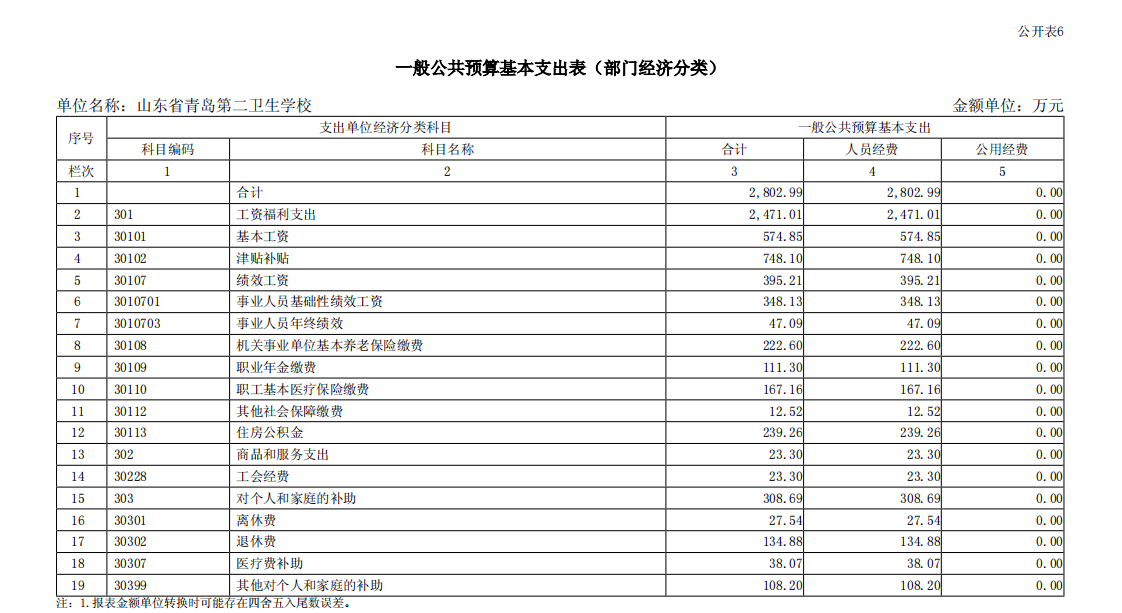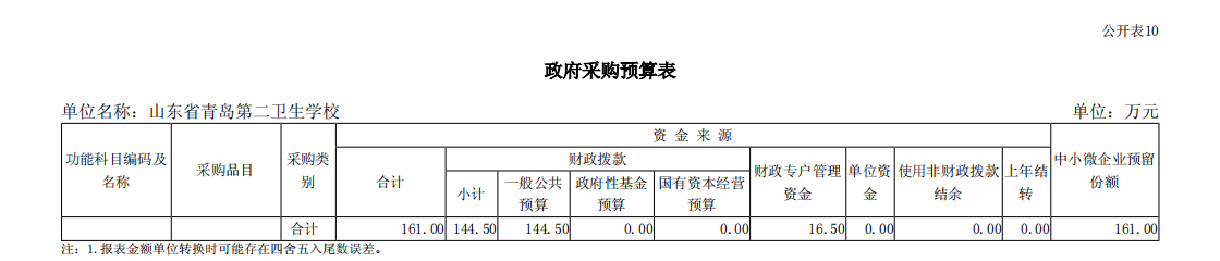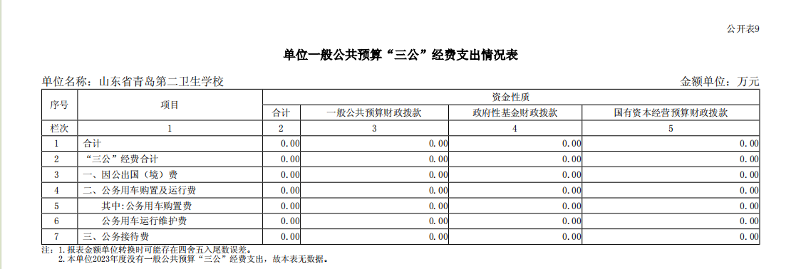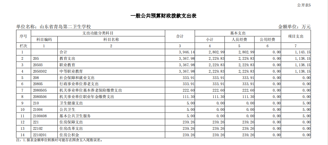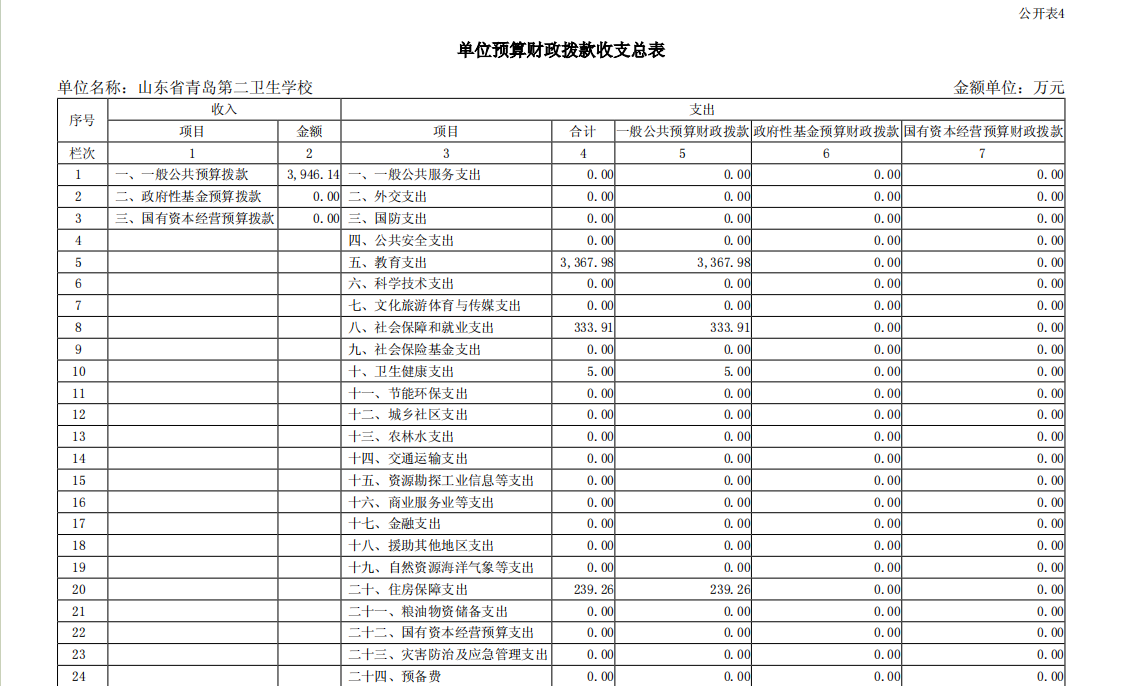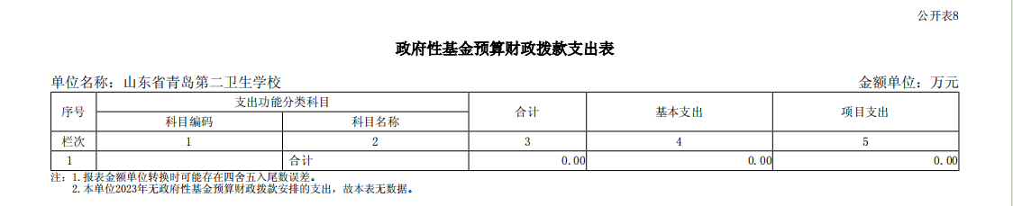 山東省青島第二衛(wèi)生學(xué)校2023年單位預(yù)算表