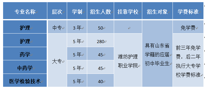 學(xué)校設(shè)有護(hù)理、藥劑、口腔修復(fù)工藝、中藥、醫(yī)學(xué)檢驗(yàn)技術(shù)五個(gè)專業(yè)。護(hù)理專業(yè)是青島市中等職業(yè)學(xué)校骨干專業(yè)、青島市對(duì)口就業(yè)率優(yōu)質(zhì)就業(yè)率“雙高”專業(yè)、山東省中等職業(yè)教育品牌專業(yè)、山東省中等職業(yè)教育專業(yè)特色化建設(shè)項(xiàng)目。在全國(guó)職業(yè)院校護(hù)理技能大賽中,累計(jì)獲得6枚金牌,在山東省同類學(xué)校中名列前茅。全日制在校生3400余人。