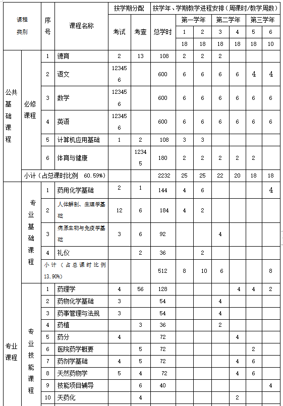 普職融通藥劑專業(yè)教學(xué)計(jì)劃