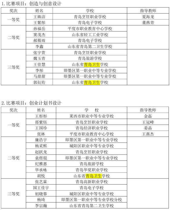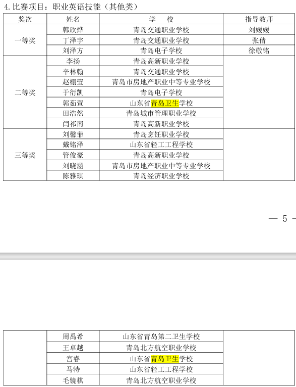 青島市教育局等5部門 關(guān)于2023年“工匠之星”青島市中等職業(yè)學(xué)校 技能大賽比賽結(jié)果的通報