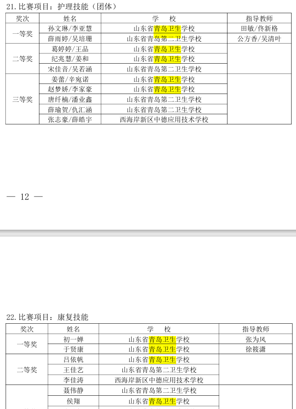 附件:2023年“工匠之星”青島市中等職業(yè)學(xué)校技能大 賽獲獎選手及輔導(dǎo)教師名單