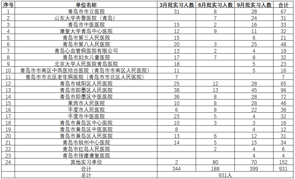 ? ? ? ? ?目前,我校與青島市市立醫(yī)院、青島市中醫(yī)醫(yī)院、山東大學(xué)齊魯醫(yī)院(青島)、康復(fù)大學(xué)青島中心醫(yī)院、青島市同仁堂等26家島城醫(yī)療機(jī)構(gòu)開(kāi)展校企合作,2025至2026學(xué)年度,我校護(hù)理、康復(fù)、藥劑、口腔、影像5個(gè)專業(yè)共931名學(xué)生在上述實(shí)習(xí)單位進(jìn)行為期8-10個(gè)月的臨床實(shí)習(xí)。