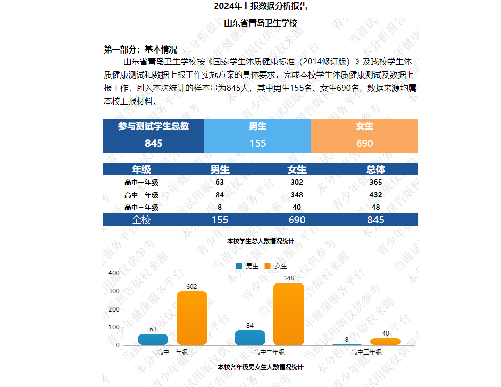山東省青島衛(wèi)生學(xué)校2024年學(xué)生體質(zhì)分析報(bào)告