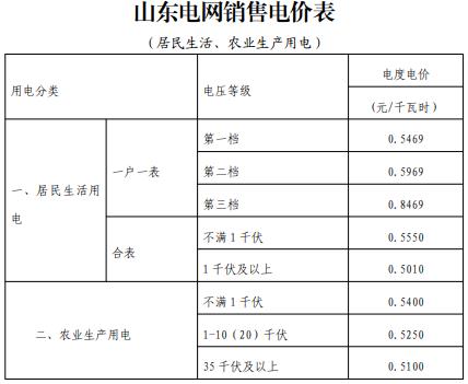 山東電網(wǎng)銷(xiāo)售電價(jià)表(居民生活、農(nóng)業(yè)生產(chǎn)用電)