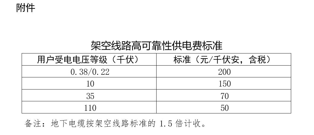 附件:架空線路高可靠性供電費(fèi)標(biāo)準(zhǔn)