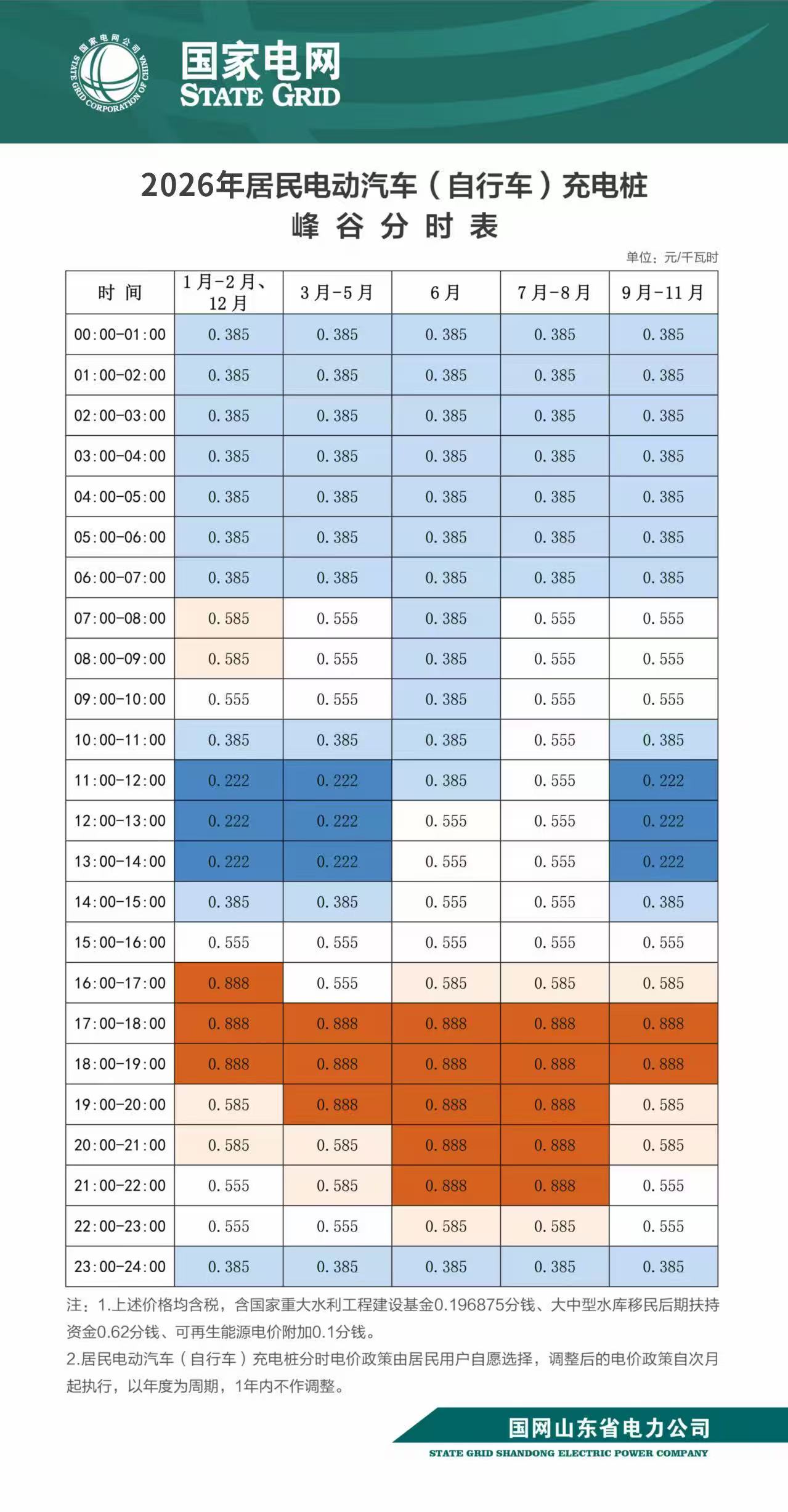 2026年居民電動汽車(自行車)充電樁峰谷分時表