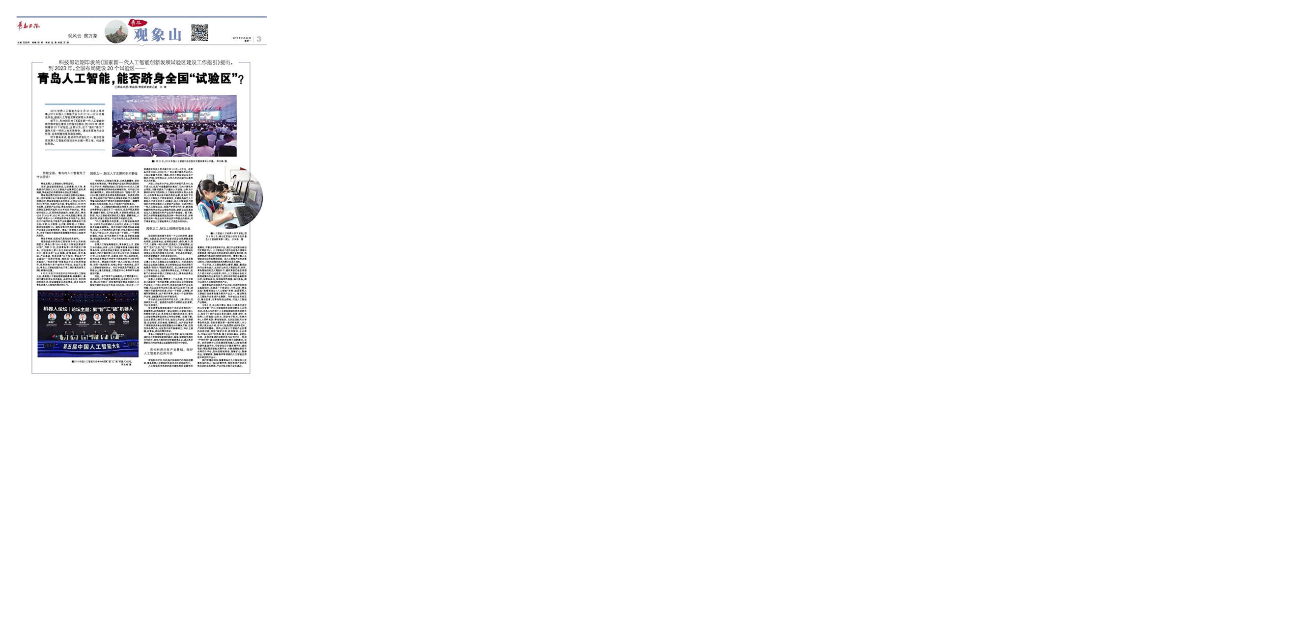 《青島日?qǐng)?bào)》青島人工智能,能否躋身全國(guó)“試驗(yàn)區(qū)”?