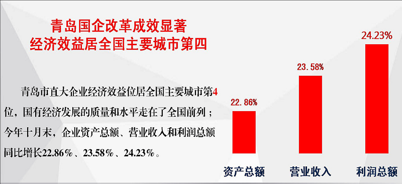 一年來(lái),市直大企業(yè)和國(guó)資委認(rèn)真貫徹落實(shí)黨的十九大精神,按照市委、市政府“走在前列”的部署要求,提出了“瞄準(zhǔn)北上廣、再奔上青天”的工作目標(biāo),多措并舉推動(dòng)市直大企業(yè)持續(xù)健康發(fā)展。青島市直大企業(yè)經(jīng)濟(jì)效益位居全國(guó)主要城市第4位;今年十月末,企業(yè)資產(chǎn)總額、營(yíng)業(yè)收入和利潤(rùn)總額同比增長(zhǎng)22.86%、23.58%、24.23%。