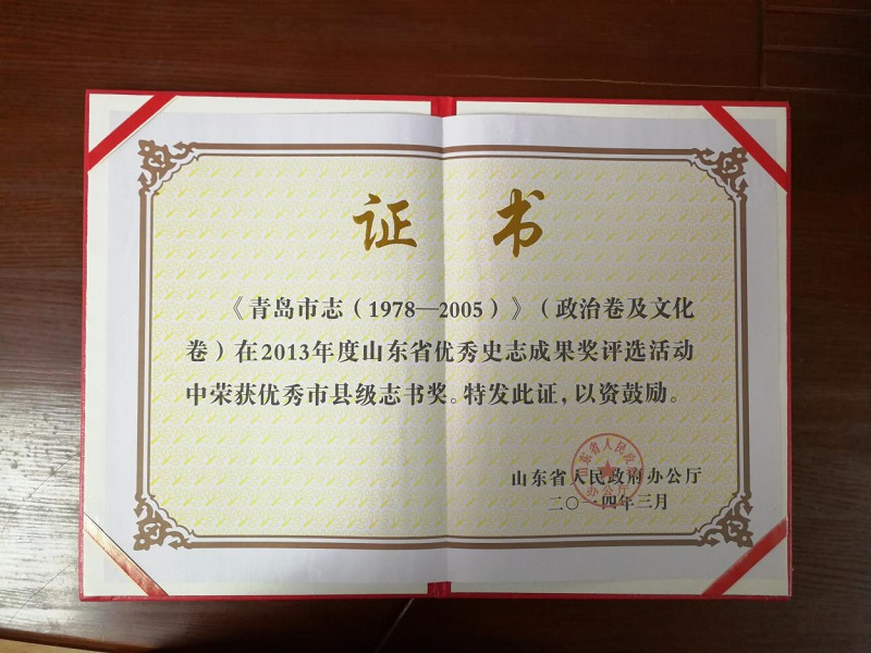第二輪《青島市志》編修工作是市委、市政府確定的重點工作目標,是我市文化強市戰(zhàn)略的重要組成部分。該工作啟動于2002年,共規(guī)劃編纂《青島市志》(1978~2005)8卷和區(qū)(市)志10部?!肚鄭u市志》(1978~2005)已于今年9月22日全部完成出版,分設大事記,城市,政治,經濟(上、中、下),文化和社會卷,文字共計800余萬字,收錄照片近1700幅。10部區(qū)市志已完成出版嶗山、即墨、城陽、黃島、李滄、平度、萊西等7部,市南、市北、膠州于年底前完成送印出版。歷時15年的第二輪《青島市志》在全國提前3年、全省提前1年圓滿完成了續(xù)修任務,為青島市文化建設留下了重要的歷史足跡。