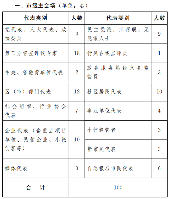 ?。ㄈ┙邮苋f(wàn)名市民代表評(píng)議。通過(guò)隨機(jī)抽取、組織推薦和自愿報(bào)名相結(jié)合的方式,進(jìn)一步優(yōu)化市民代表構(gòu)成,邀請(qǐng)1萬(wàn)名市民代表分別在市級(jí)主會(huì)場(chǎng)以及各區(qū)(市)和青島高新區(qū)分會(huì)場(chǎng),現(xiàn)場(chǎng)聽(tīng)取各部門(mén)述職報(bào)告,采用無(wú)記名的方式現(xiàn)場(chǎng)填寫(xiě)并提交評(píng)議票,每組發(fā)放評(píng)議票2500張。同時(shí),組織填寫(xiě)社情民意調(diào)查問(wèn)卷等。市民代表的評(píng)議票當(dāng)場(chǎng)回收、密封,主會(huì)場(chǎng)與分會(huì)場(chǎng)評(píng)議票混合后由第三方匯總統(tǒng)計(jì),評(píng)議結(jié)果計(jì)入市政府各部門(mén)全市綜合考核成績(jī)。