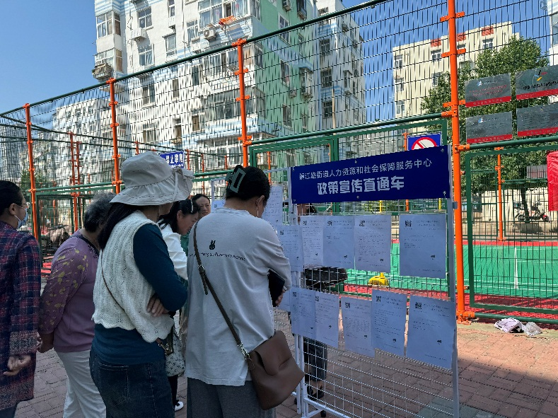 活動(dòng)現(xiàn)場(chǎng)居民正在了解人社中心相關(guān)就業(yè)政策和信息