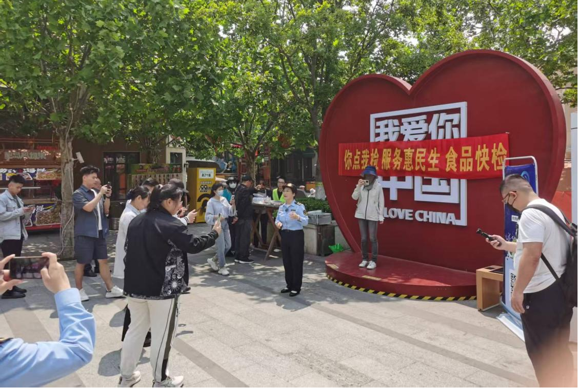 ?區(qū)市場(chǎng)監(jiān)管局工作人員現(xiàn)場(chǎng)講解食品快檢知識(shí)