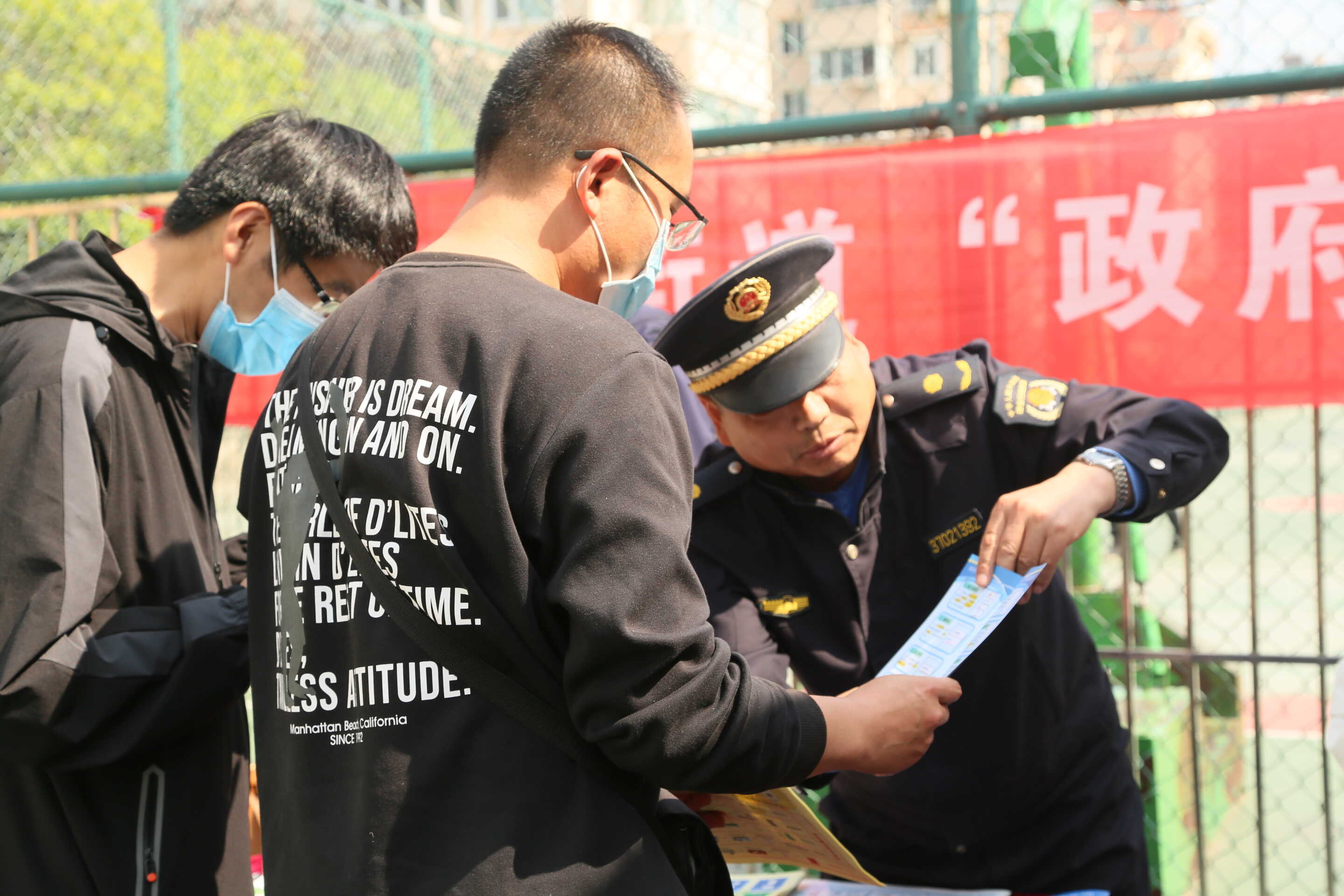 現(xiàn)場工作人員圍繞關(guān)系居民切身利益以及居民關(guān)心的事項,發(fā)放宣傳材料,進行政策和辦理流程的講解。比如,經(jīng)濟文化服務中心向居民發(fā)放文體地圖,宣傳轄區(qū)文化體育設(shè)施及健身路徑;綜合執(zhí)法中隊在現(xiàn)場發(fā)放《青島市違法建設(shè)治理條例》小冊子,指導居民使用門頭招牌前置服務小程序;便民服務中心為居民發(fā)放孕前檢查彩頁,普及健康知識。此外,現(xiàn)場還圍繞民生救助、就業(yè)服務、企業(yè)服務、防災減災等政策進行了宣傳解讀。對于居民提出的各種問題,現(xiàn)場工作人員現(xiàn)場進行了解答,并手把手教群眾辦理相關(guān)業(yè)務。