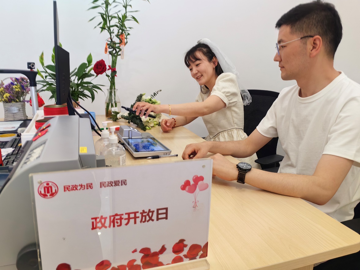 為進(jìn)一步暢通政民互動渠道,提升為民服務(wù)效能,推動優(yōu)化營商環(huán)境,5月20日結(jié)婚登記高峰日,城陽區(qū)民政局在區(qū)政務(wù)服務(wù)中心二樓舉辦“政府開放日”活動,活動以“乘政府開放新風(fēng) 啟新婚甜蜜之旅”為主題,通過“為愛護航”、“集體頒證”、“開門決策聽民意,您說我辦”、“政策宣講”等活動,進(jìn)一步提升了群眾獲得感和幸福感,現(xiàn)場300余對新人參與了活動。