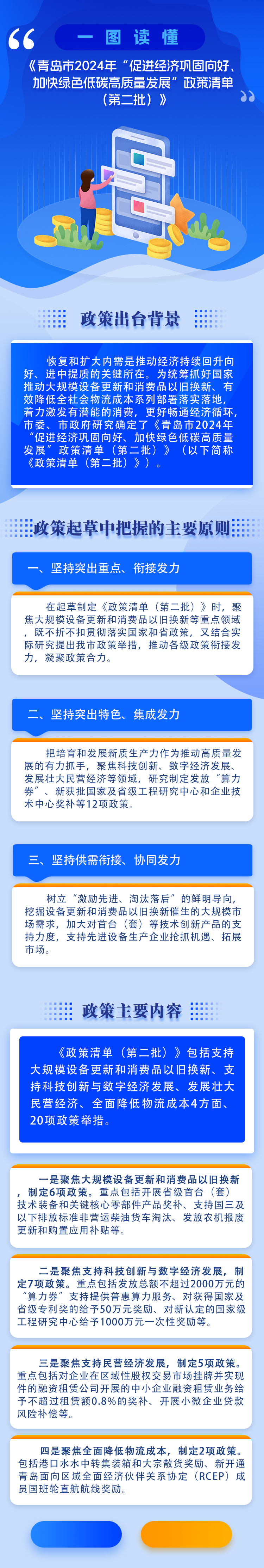 【圖片解讀】《青島市2024年“促進經(jīng)濟鞏固向好、加快綠色低碳高質(zhì)量發(fā)展”政策清單(第二批)》政策解讀
