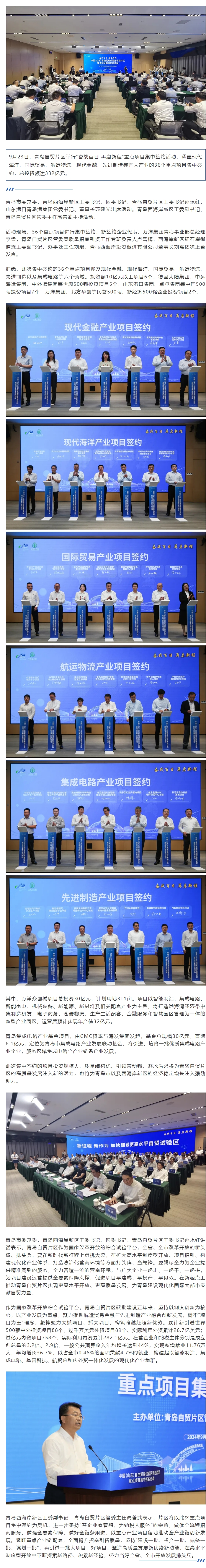 奮戰(zhàn)百日 再啟新程 青島自貿(mào)片區(qū)總投資332億元的36個重點項目集中簽約