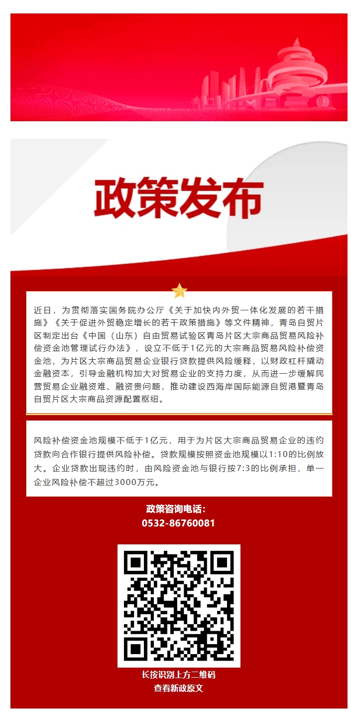 設(shè)立不低于1億元的資金池!青島自貿(mào)片區(qū)制定出臺大宗商品貿(mào)易風(fēng)險補(bǔ)償資金池管理試行辦法