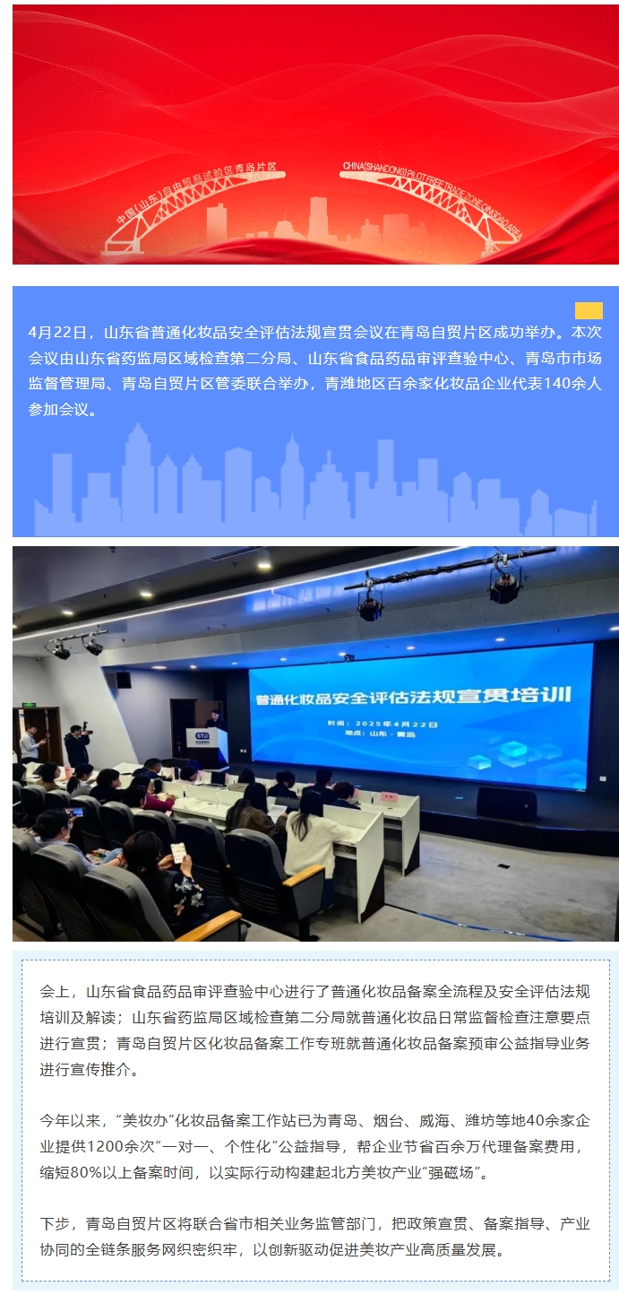 山東省普通化妝品安全評估法規(guī)宣貫會(huì)議在青島自貿(mào)片區(qū)成功舉辦