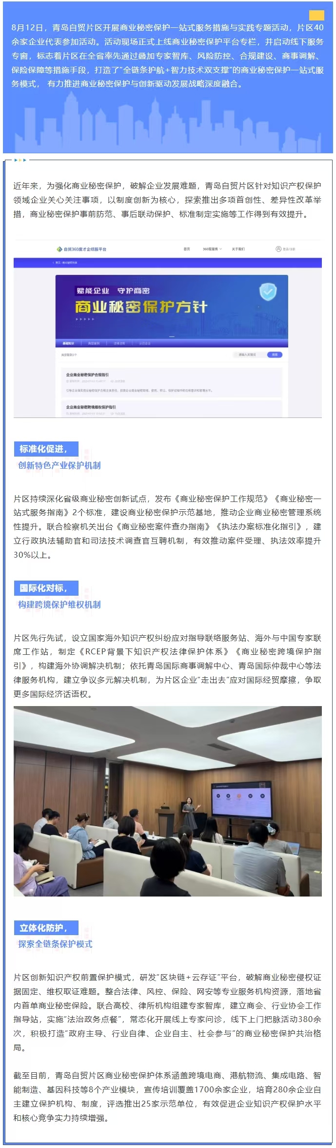 青島自貿片區(qū)在全省率先打造商業(yè)秘密保護一站式服務模式