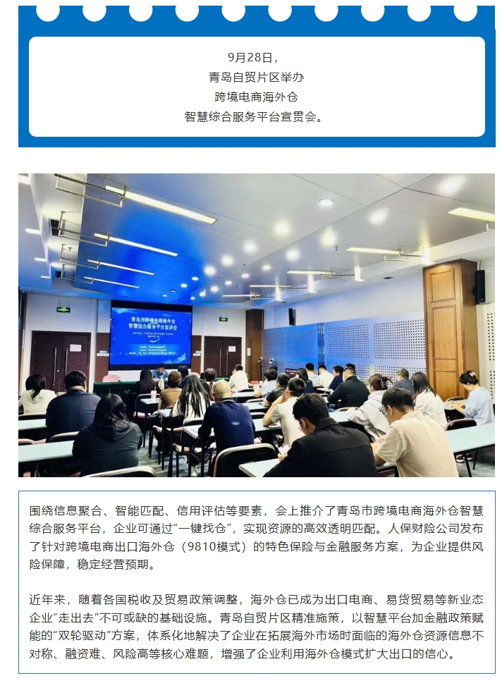青島自貿(mào)片區(qū)舉辦跨境電商海外倉智慧綜合服務(wù)平臺宣貫會
