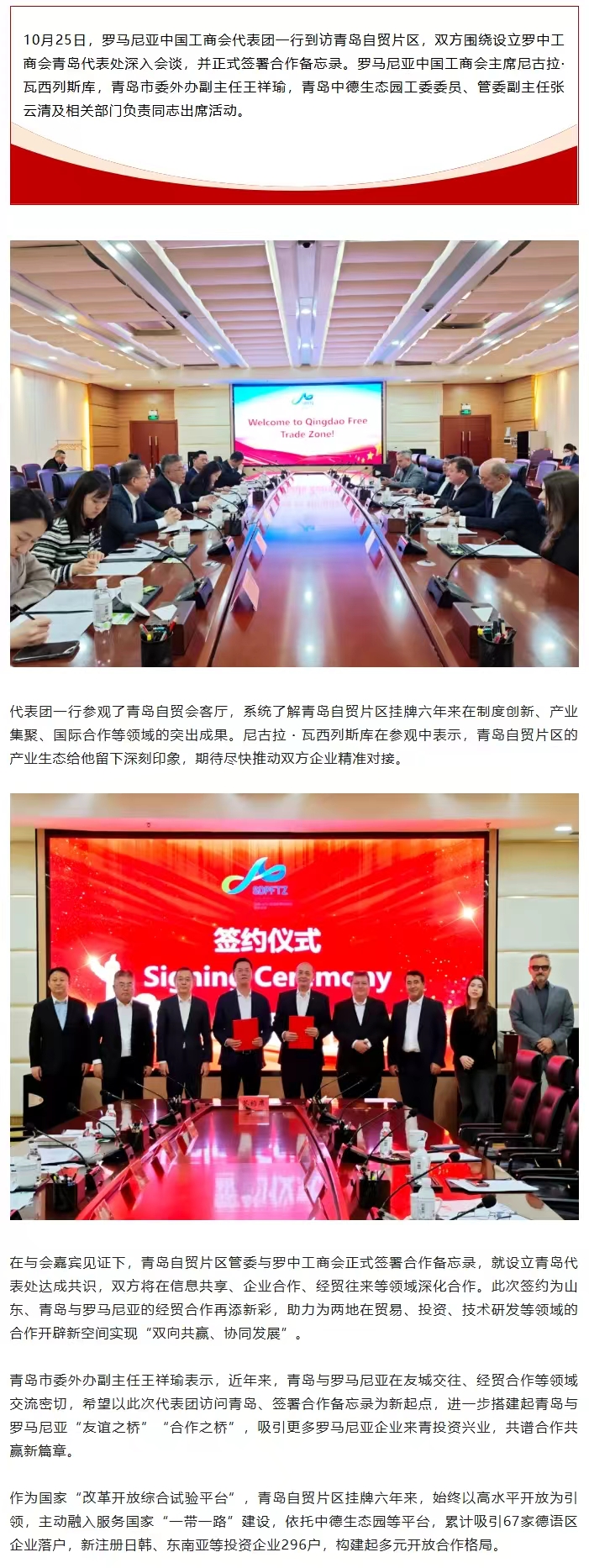 青島自貿(mào)片區(qū)與羅馬尼亞中國工商會(huì)簽署備忘錄,共啟經(jīng)貿(mào)合作新篇章