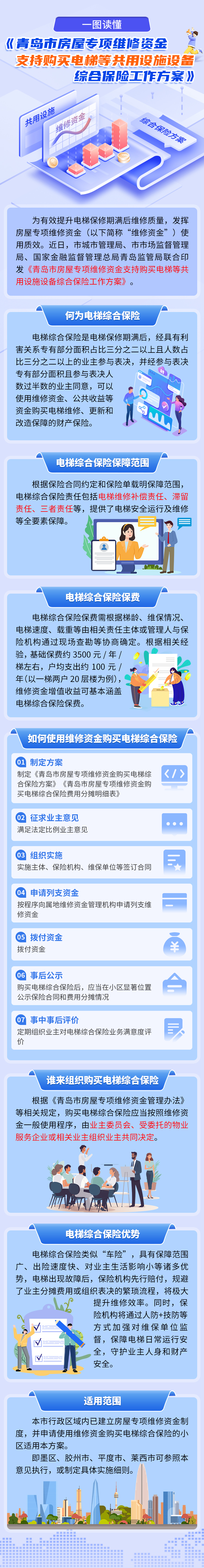 《青島市房屋專項(xiàng)維修資金支持購買電梯等共用設(shè)施設(shè)備綜合保險(xiǎn)工作方案》一圖讀懂