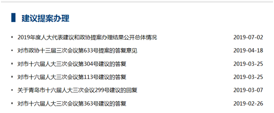 在人大代表建議和政協(xié)提案辦理結(jié)果公開方面,2019年市財政局通過青島政務(wù)網(wǎng)、本部門網(wǎng)站等渠道,向社會公開本部門牽頭辦理的建議提案原文及答復(fù)意見5件。