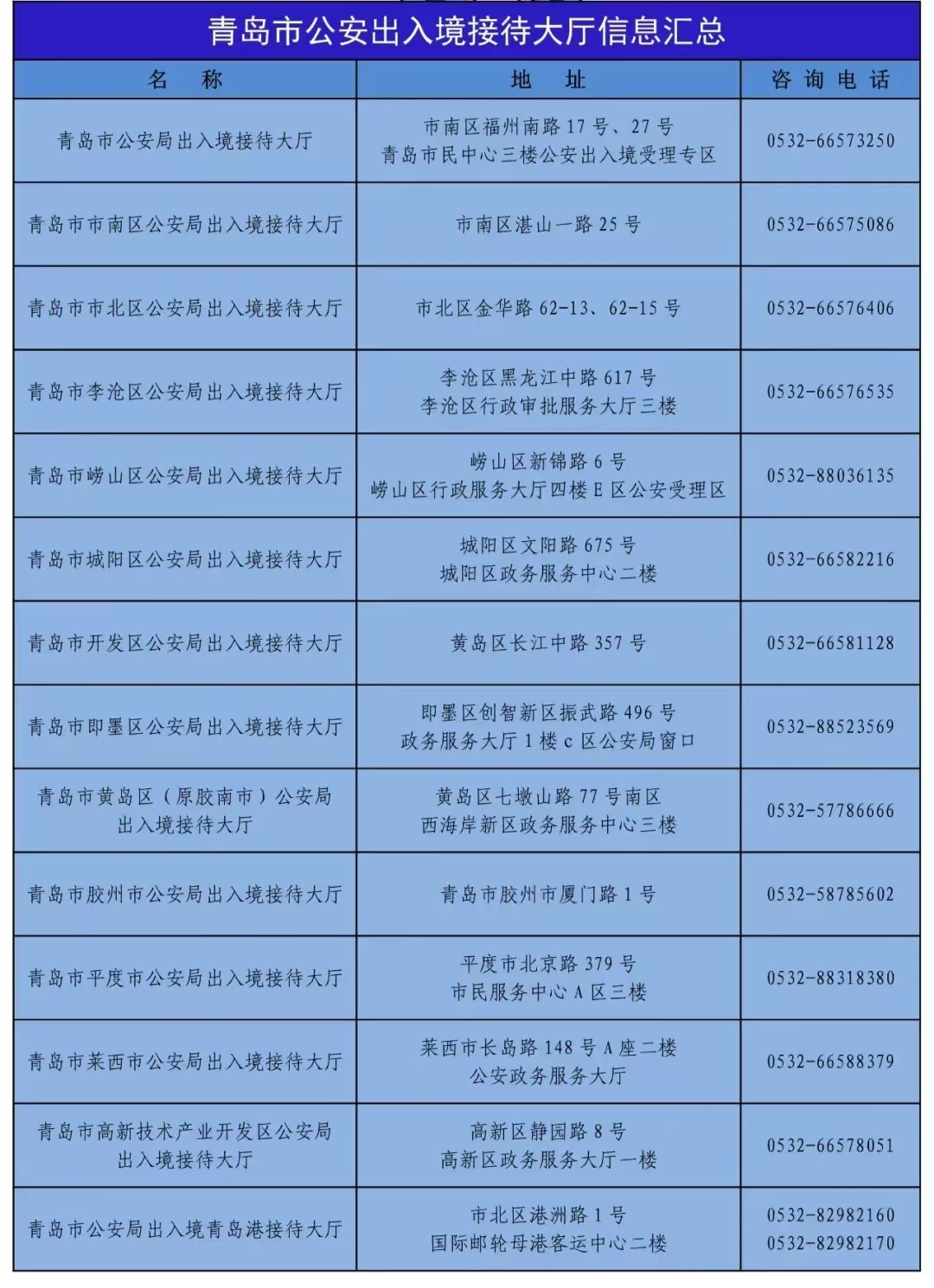 附件:全市公安出入境接待大廳信息匯總