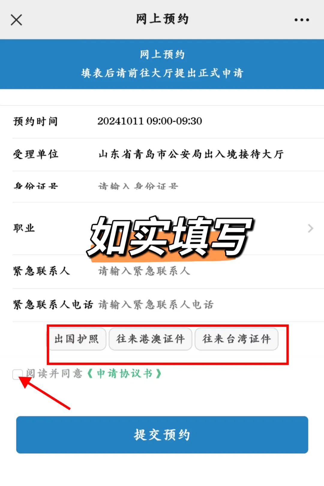第三步:如實(shí)填寫申請信息,點(diǎn)擊“閱讀并同意”,點(diǎn)擊“提交預(yù)約”