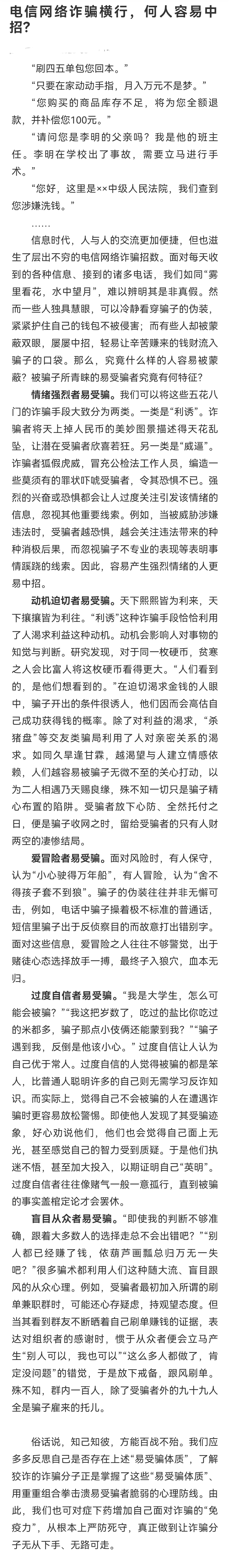 【反詐預(yù)警】電信網(wǎng)絡(luò)詐騙橫行,何人容易中招?